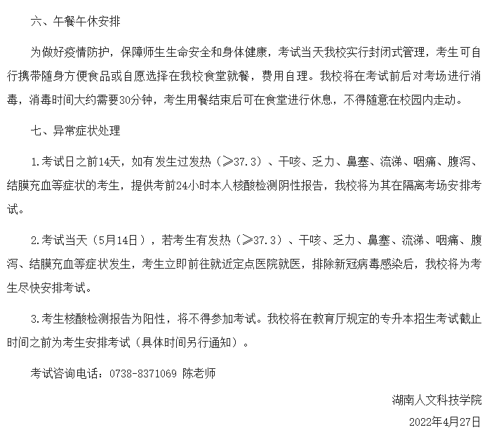 湖南理工学院南湖学院2022年专升本考试疫情防控管理补充说明